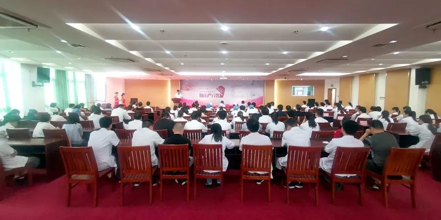 在2019年中国医师节来临之际,为弘扬以人为本、救死扶伤的精神,营造尊重医师、关爱医师、激励医师的良好的氛围,无锡市第二中医医院于8月17日下午,在院内召开2019年“中国医师节”庆祝表彰大会,全院职工代表们齐聚一堂,分享收获,展望未来,激扬宣誓,坚定信念。大会由院长助理、医务科科长夏雨主持,院党总支书记戴美、副院长刘沁峰、副院长陈阳等院领导出席。